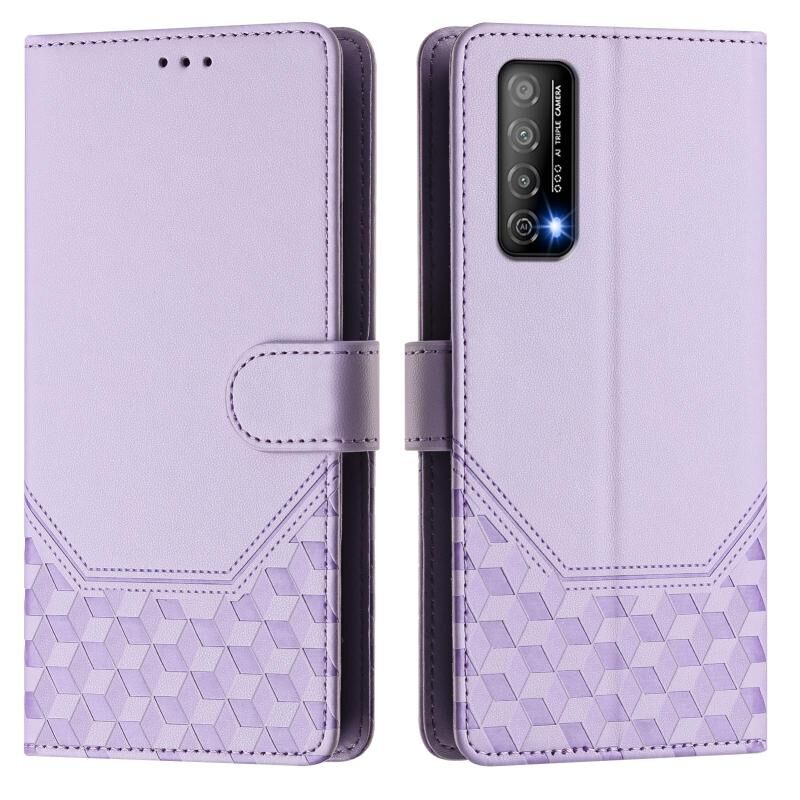 Για Huawei Enjoy 20 SE / P Smart 2021 Honeycomb ανάγλυφο RFID δερμάτινη θήκη τηλεφώνου (Light Purple)