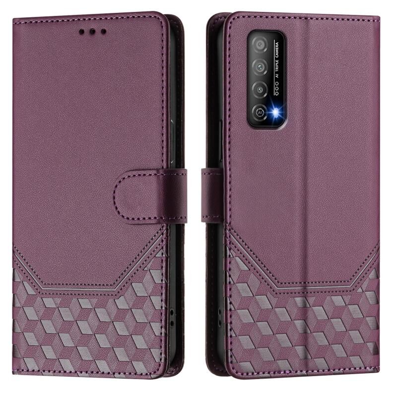 Για Huawei Enjoy 20 SE / P Smart 2021 Honeycomb ανάγλυφο RFID δερμάτινη θήκη τηλεφώνου (Violet)