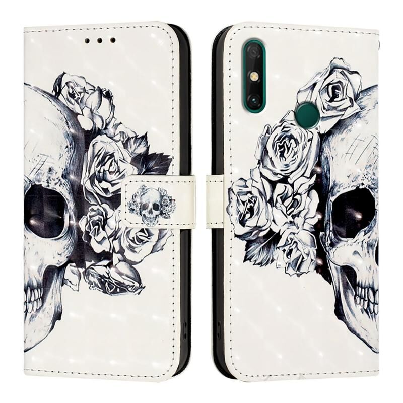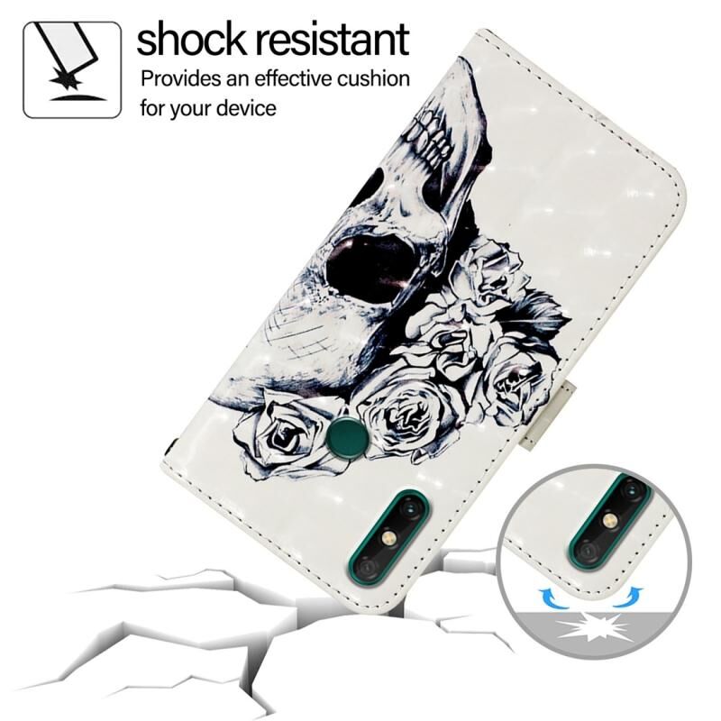 Θήκη τηλεφώνου από δέρμα με οριζόντιο άνοιγμα και τρισδιάστατη ζωγραφική για Huawei Enjoy 20 SE / Y7a 4G (Κρανίο)
