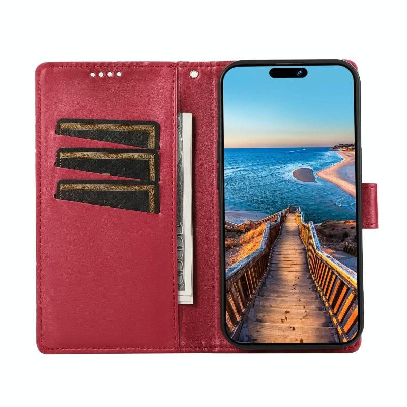 Θήκη τηλεφώνου Huawei Enjoy 30 Plus PU με υφή γνήσιου δέρματος και ανάγλυφο σχέδιο (Κόκκινο)