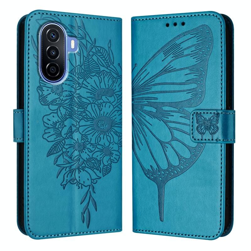 Για Huawei Enjoy 50 4G / Nova Y70 Plus ανάγλυφη πεταλούδα δερμάτινη θήκη τηλεφώνου (μπλε)