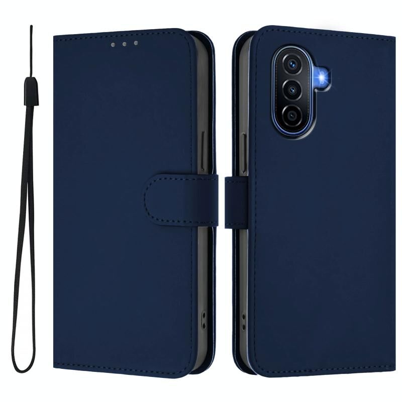 Για Huawei Enjoy 50 4G / nova Y70 Plus δέρμα αισθάνονται στερεό χρώμα δερμάτινη θήκη τηλεφώνου με κορδόνι (Navy Blue)