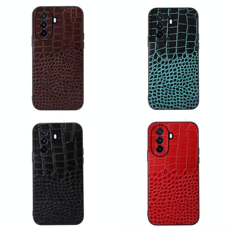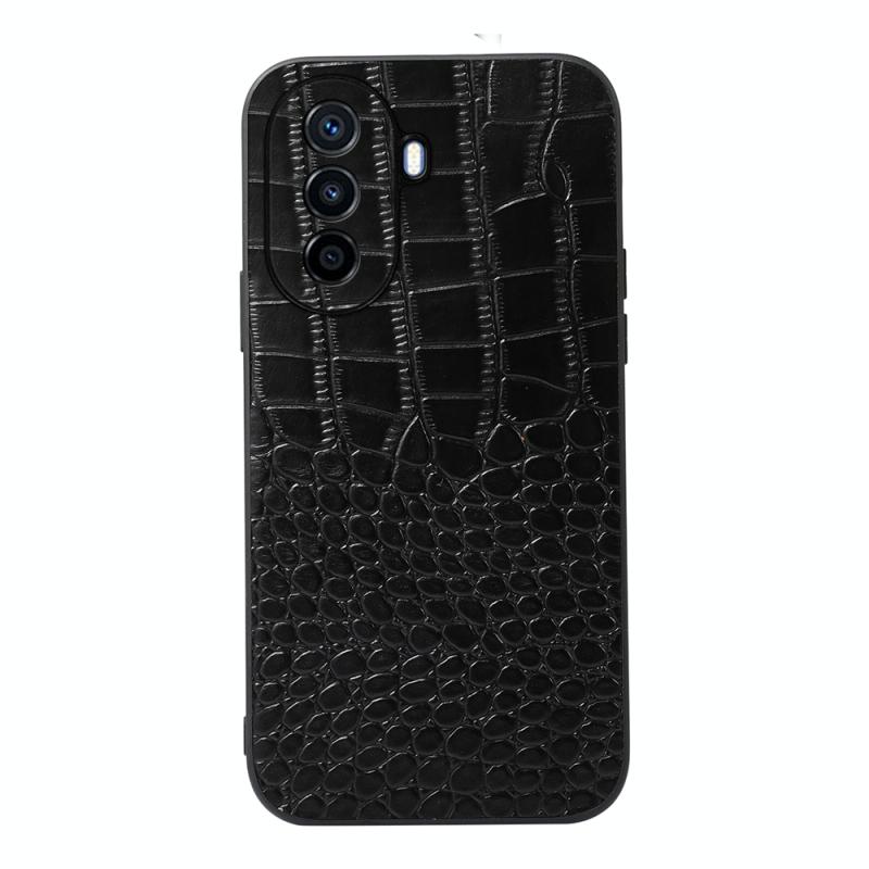Θήκη τηλεφώνου από γνήσιο δέρμα αγελάδας με επένδυση κροκόδειλου για Huawei Enjoy 50 China/nova Y70 4G Global/nova Y70 Plus (Κυανό Μπλε)