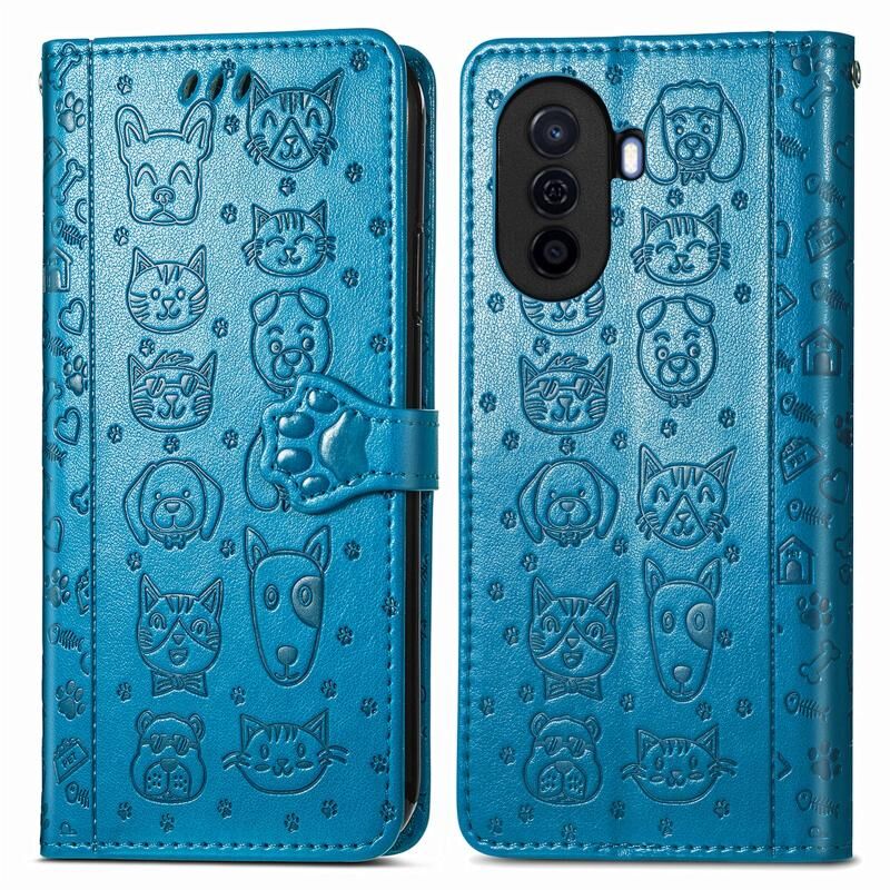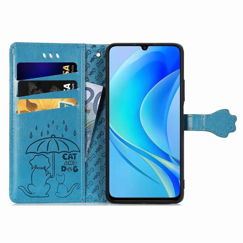 Θήκη τηλεφώνου από δέρμα με ανάγλυφα σχέδια χαριτωμένων γάτας και σκύλου για Huawei Enjoy 50 (Μωβ)