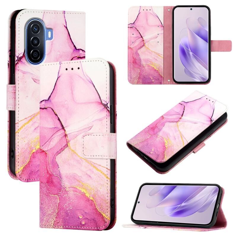 Θήκη τηλεφώνου Huawei Enjoy 50 / nova Y70 Plus PT003 με σχέδιο μαρμάρου, δερμάτινη, αναδιπλούμενη (Ροζ Μωβ Χρυσό)