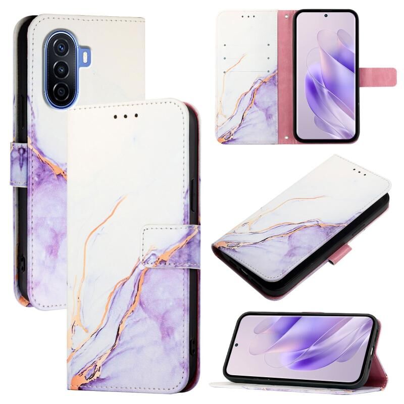 Θήκη τηλεφώνου Huawei Enjoy 50 / nova Y70 Plus PT003 με σχέδιο μαρμάρου, δερμάτινη, αναδιπλούμενη (Λευκό Μωβ)