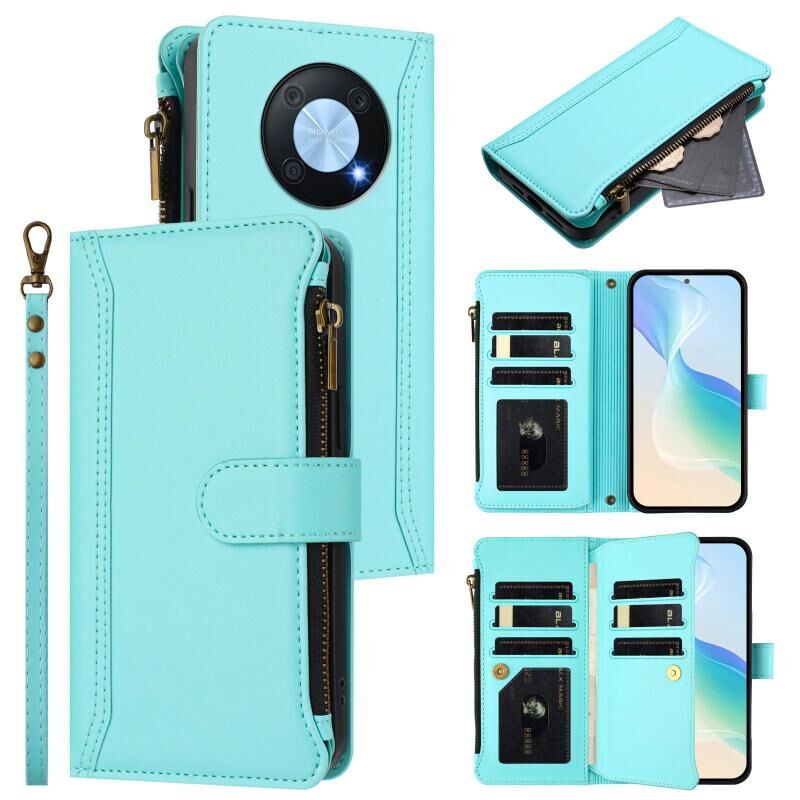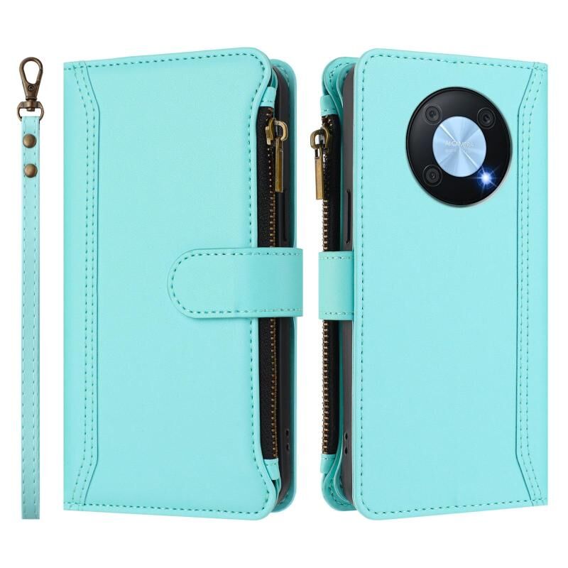 Για το Huawei Enjoy 50 Pro 4G, θήκη δέρματος με μαγνητικό κλείσιμο, 9 θέσεις για κάρτες και φερμουάρ, με λουρί χειρός (Σκούρο Μπλε)