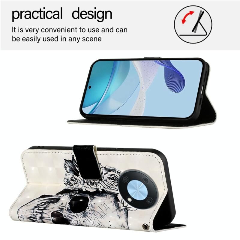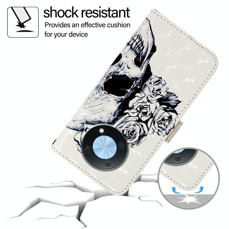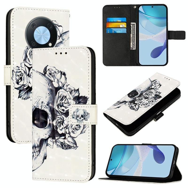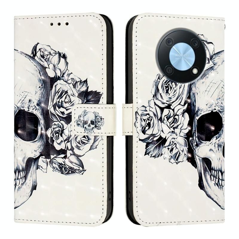 Θήκη τηλεφώνου από δέρμα με οριζόντιο άνοιγμα και τρισδιάστατη ζωγραφική για Huawei Enjoy 50 Pro 4G / Nova Y90 (Κρανίο)