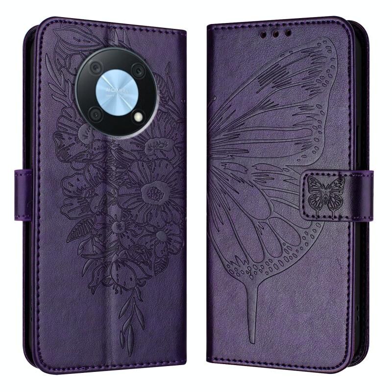 Για Huawei Enjoy 50 Pro 4G / Nova Y90 ανάγλυφη πεταλούδα δερμάτινη θήκη τηλεφώνου (σκούρο μωβ)