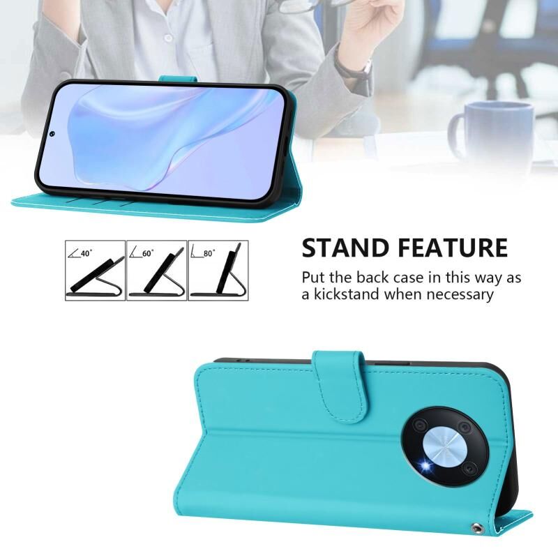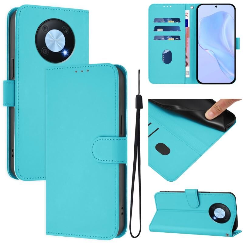 Για το Huawei Enjoy 50 Pro 4G / nova Y90 Skin Feel Solid Color δερμάτινη θήκη τηλεφώνου με κορδόνι (Lake Blue)