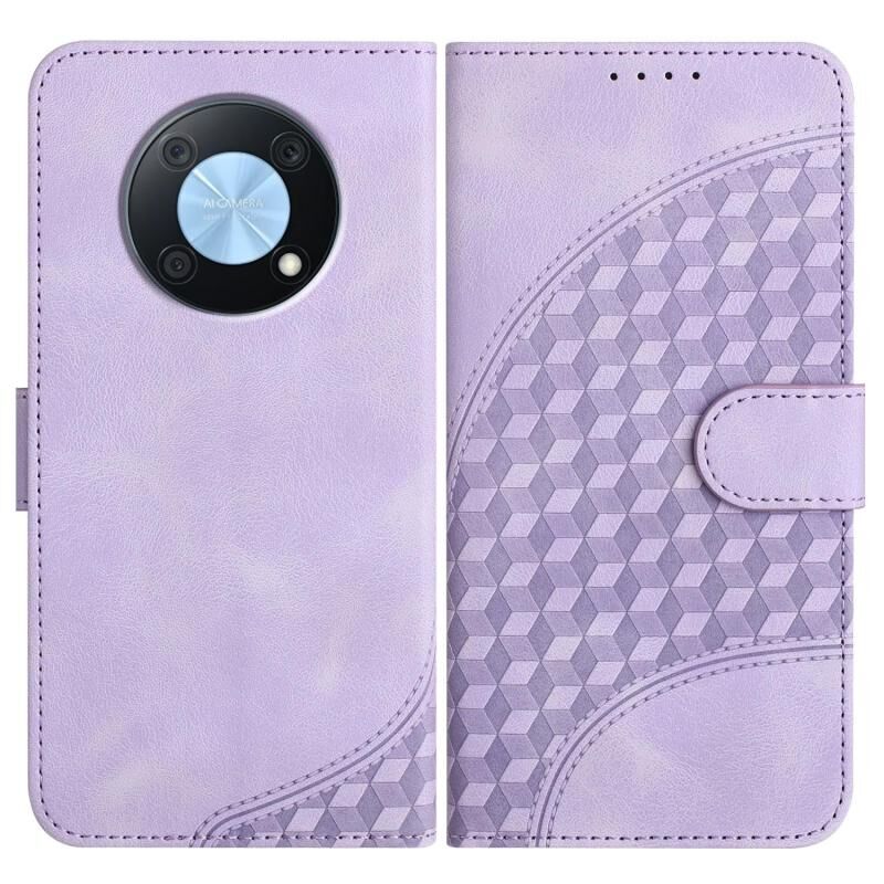 Θήκη δερμάτινη για Huawei Enjoy 50 Pro / nova Y90 με ανάγλυφο σχέδιο κεφαλής ελέφαντα και λουρί (Ανοιχτό Μωβ)