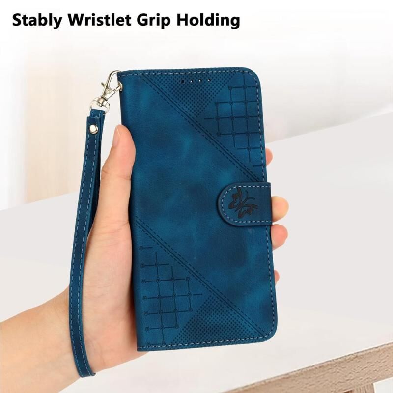 Θήκη τηλεφώνου από δέρμα με ανάγλυφο σχέδιο πλέγματος πεταλούδας για Huawei Enjoy 50 Pro / nova Y90 με κορδόνι (Σκούρο μπλε)