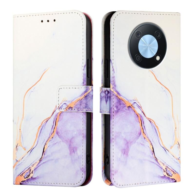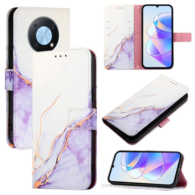 Θήκη τηλεφώνου Huawei Enjoy 50 Pro / nova Y90 PT003 με σχέδιο μαρμάρου, δερμάτινη, αναδιπλούμενη (Λευκό-Μωβ)