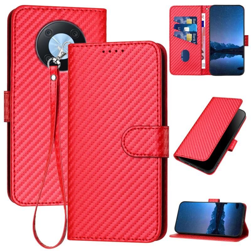 Για Huawei Enjoy 50 Pro / nova Y90 YX0070 Carbon Fiber Πόρπη δερμάτινη θήκη τηλεφώνου με κορδόνι (κόκκινο)