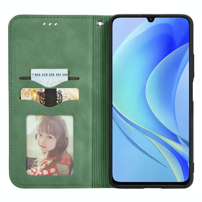Για Huawei Enjoy 50 Ρετρό δέρμα αίσθηση μαγνητικό δέρμα τηλέφωνο υπόθεση (Πράσινο)