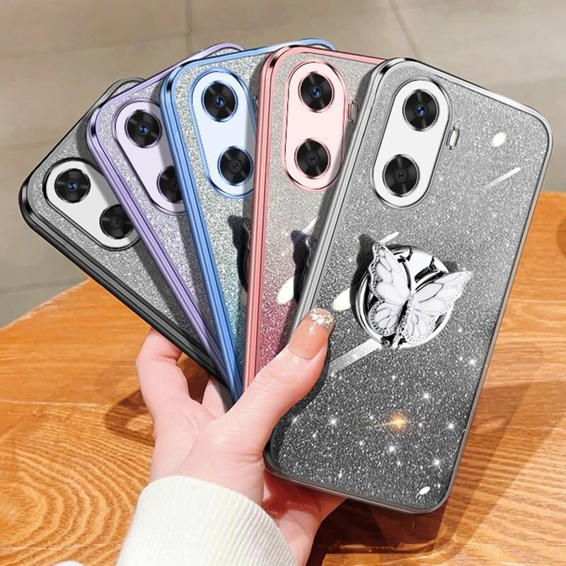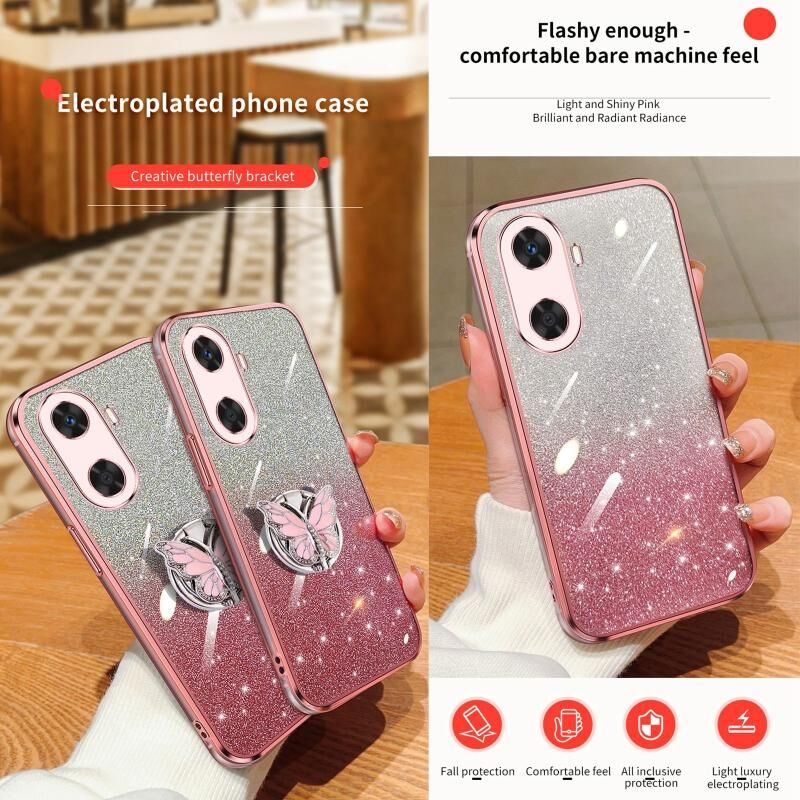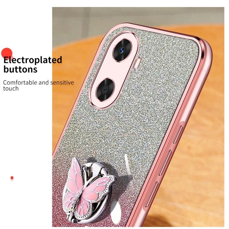 Θήκη κινητού τηλεφώνου Huawei Enjoy 60 με επιμετάλλωση, διαβαθμισμένη λάμψη, σχέδιο πεταλούδας, από TPU (Ροζ)