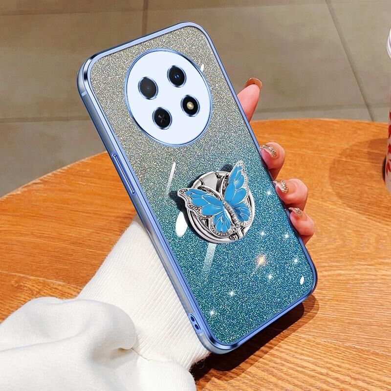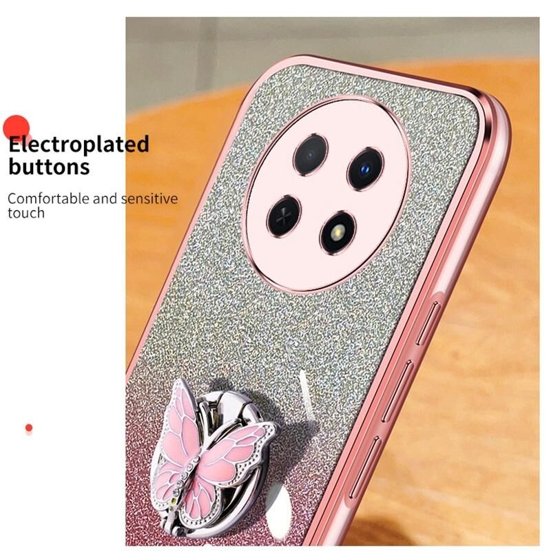 Θήκη κινητού τηλεφώνου Huawei Enjoy 60X με επιμετάλλωση, διαβαθμισμένη λάμψη, σχέδιο πεταλούδας, από TPU (Ροζ)