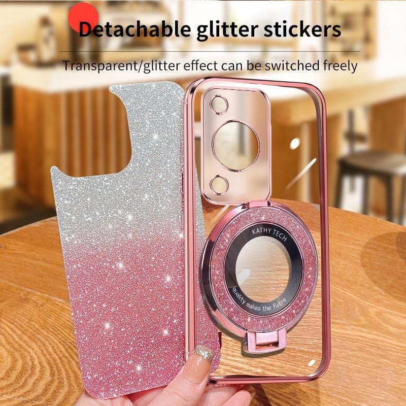 Για Huawei Enjoy 70 επιμεταλλωμένο διαβάθμιση Glitter στρογγυλό κάτοχος TPU τηλέφωνο υπόθεση (ροζ)