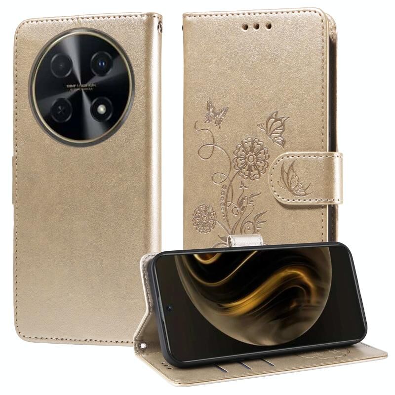 Θήκη τηλεφώνου από δέρμα με ανάγλυφα λουλούδια και πεταλούδες για Huawei Enjoy 70 Pro 4G / nova 12i (Μωβ)