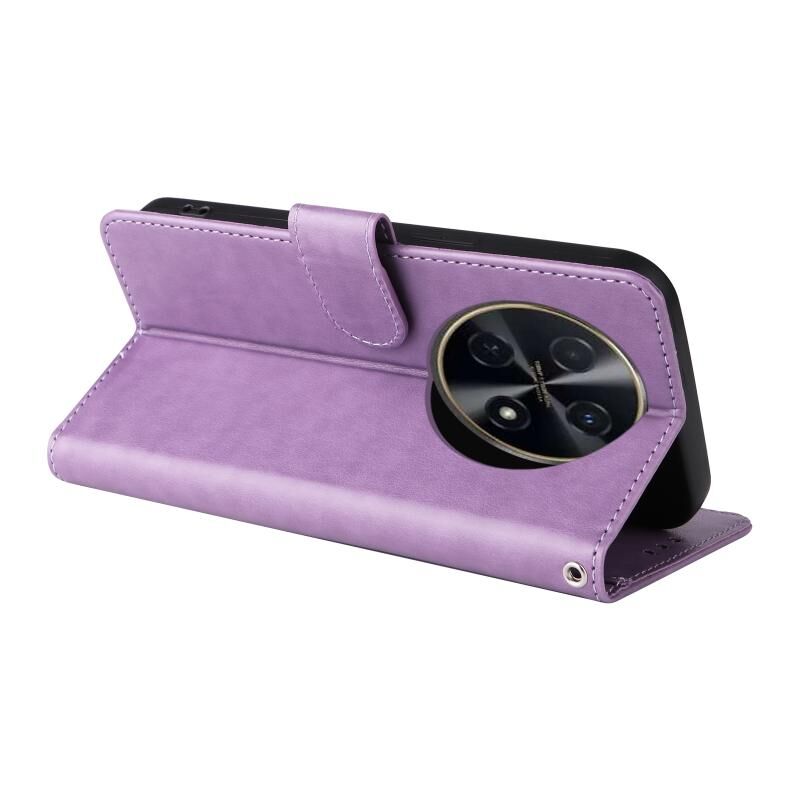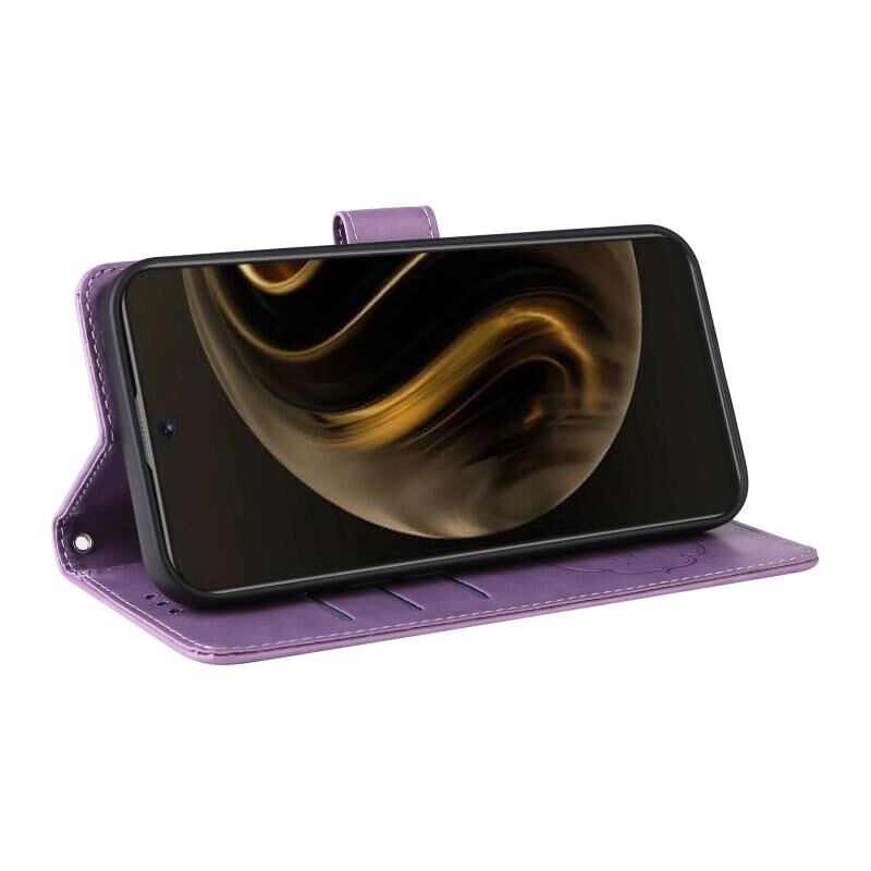 Θήκη τηλεφώνου από δέρμα με ανάγλυφα λουλούδια και πεταλούδες για Huawei Enjoy 70 Pro 4G / nova 12i (Μωβ)