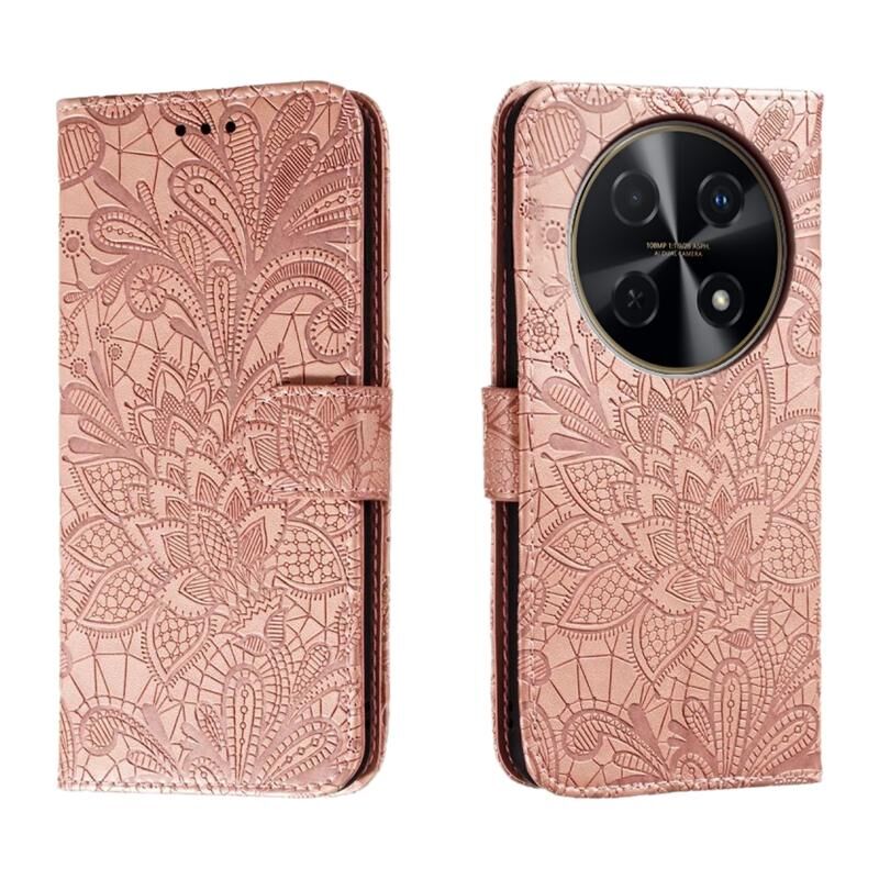 Για Huawei Enjoy 70 Pro Lace λουλούδι ανάγλυφο Flip υπόθεση τηλεφώνου δέρμα (Rose Gold)