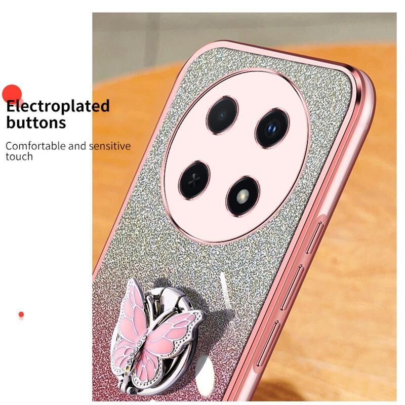 Θήκη κινητού τηλεφώνου Huawei Enjoy 70 Pro Επικαλυμμένη Διαβαθμισμένη Λάμψη Πεταλούδα (Ροζ)