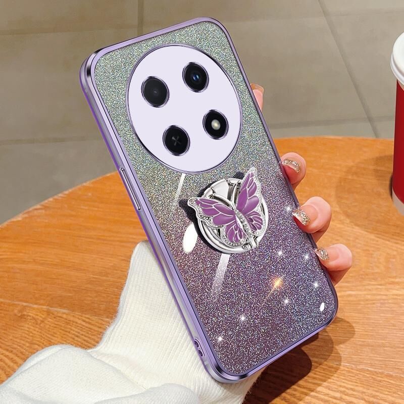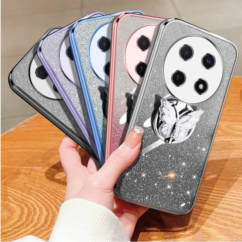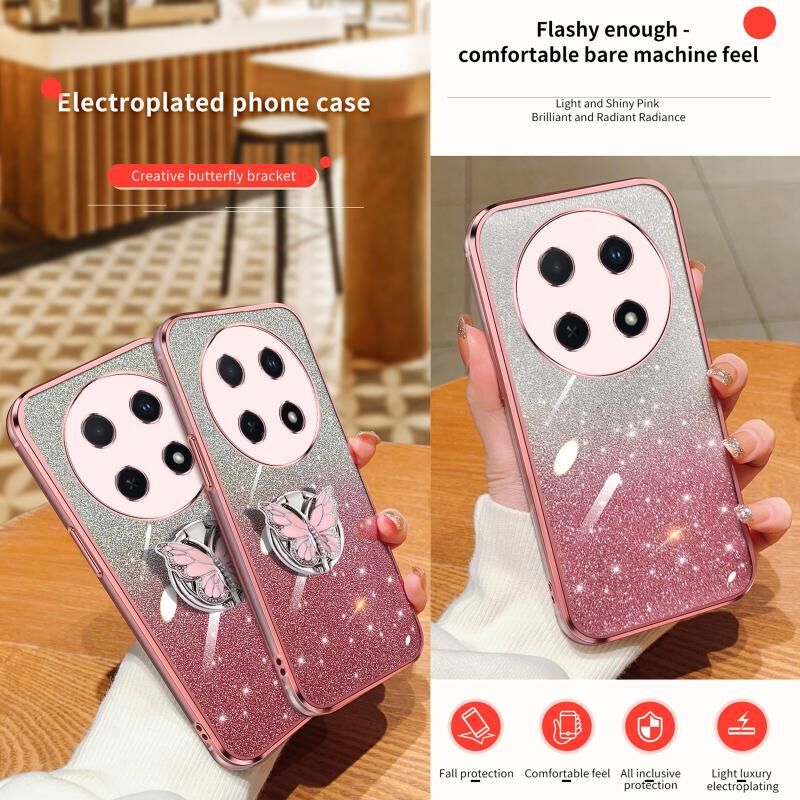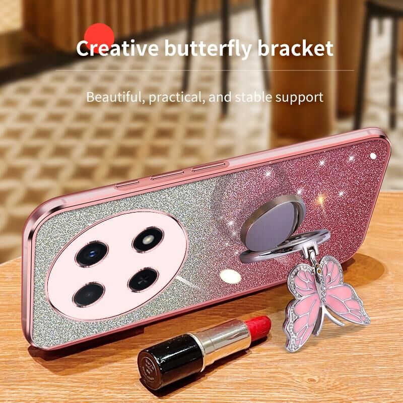 Θήκη κινητού τηλεφώνου Huawei Enjoy 70 Pro Επικαλυμμένη Διαβαθμισμένη Λάμψη Πεταλούδα (Ροζ)