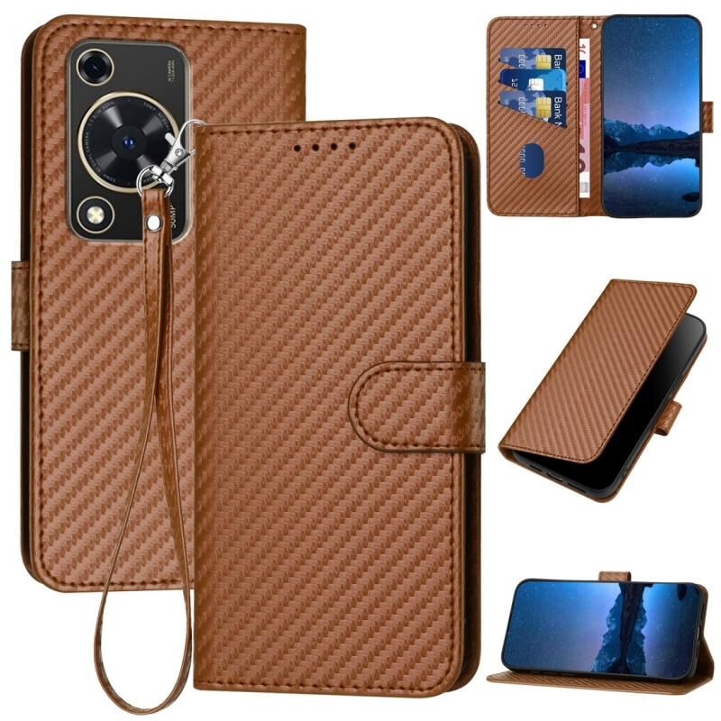 Για Huawei Enjoy 70 YX0070 Carbon Fiber πόρπη δερμάτινη θήκη τηλεφώνου με κορδόνι (καφέ)