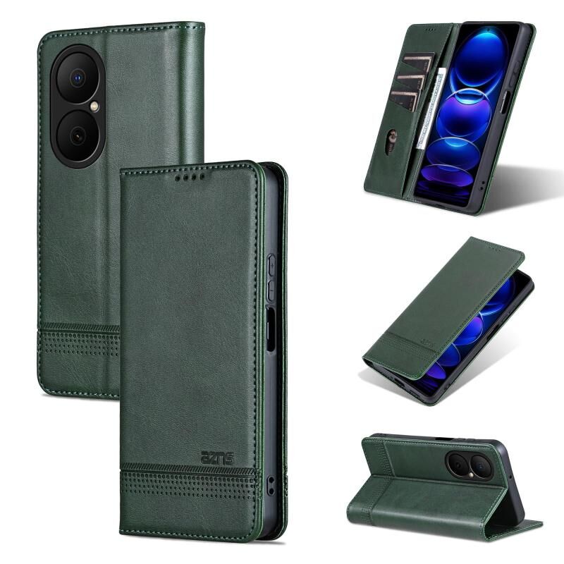 Θήκη τηλεφώνου Huawei Enjoy 80 AZNS Μαγνητική Δερμάτινη με Υφή Μοσχαριού (Μαύρο) (Σκούρο πράσινο)
