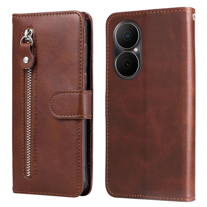 For Huawei Enjoy 80 Fashion Calf Texture Zipper Leather Phone Case(Brown)