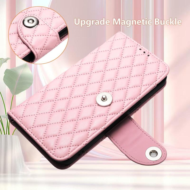 For Huawei Enjoy 80s 4G Rhombic Texture Flip Leather Phone Case with Lanyard(Pink)