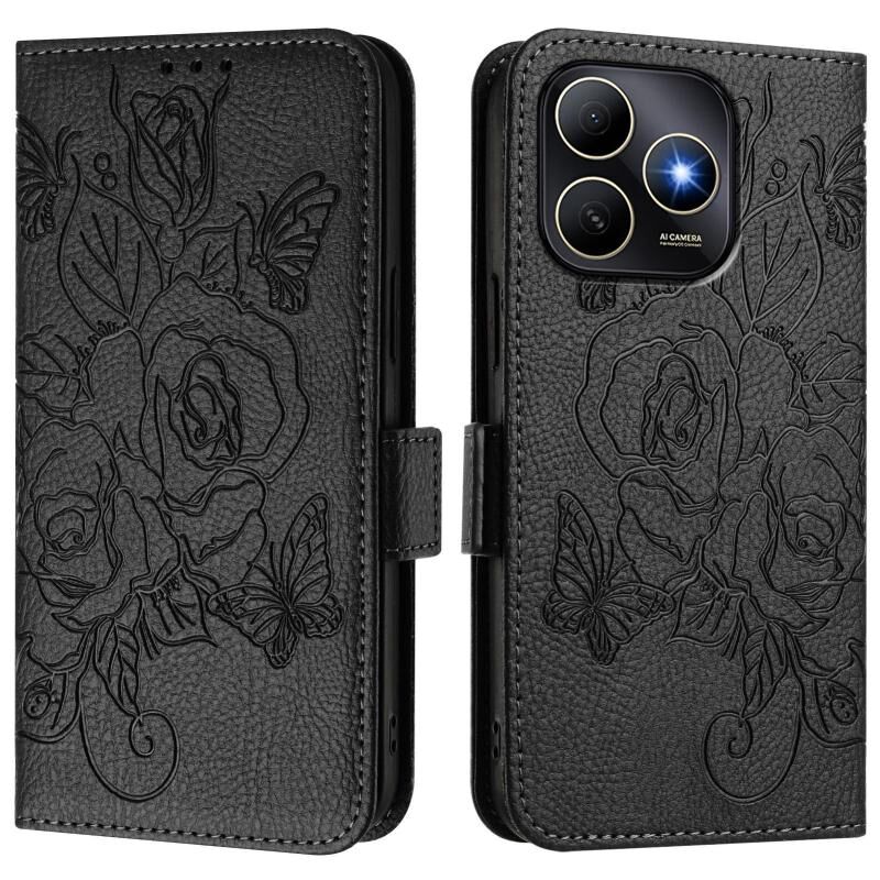 For Huawei Enjoy 80s Embossed Rose RFID Anti-theft Leather Phone Case(Black)
