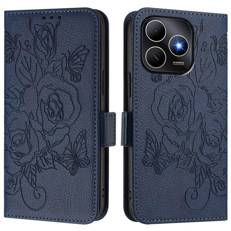 For Huawei Enjoy 80s Embossed Rose RFID Anti-theft Leather Phone Case(Dark Blue)