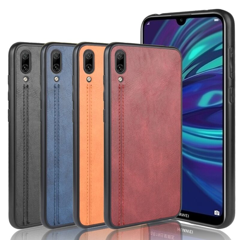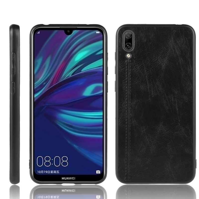 Για το Huawei Enjoy 9 / Y7 Pro 2019 Shockproof Sewing Cow Pattern Skin PC + PU + TPU Case (Μαύρο)