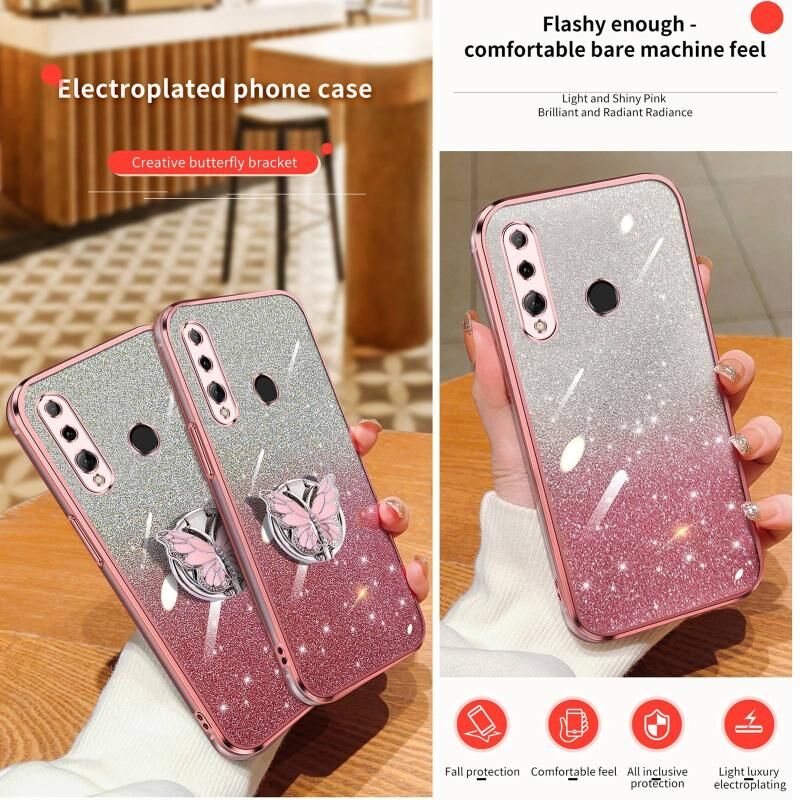 Θήκη τηλεφώνου Huawei Enjoy 9s, επιμεταλλωμένη, με λαμπερό διαβαθμισμένο σχέδιο πεταλούδας, από TPU (Ροζ)