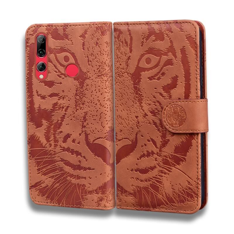 Θήκη Huawei Enjoy 9s με ανάγλυφο σχέδιο τίγρης, οριζόντια, δερμάτινη με βάση στήριξης & θήκες για κάρτες & πορτοφόλι (Καφέ)