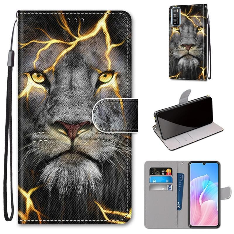 Θήκη Huawei Enjoy Z / 20 Pro με πολύχρωμο σχέδιο, υφή διασταύρωσης, οριζόντια αναδίπλωση από δερματίνη PU με βάση & υποδοχές καρτών & πορτοφόλι & κορδόνι (Κόκκινο)