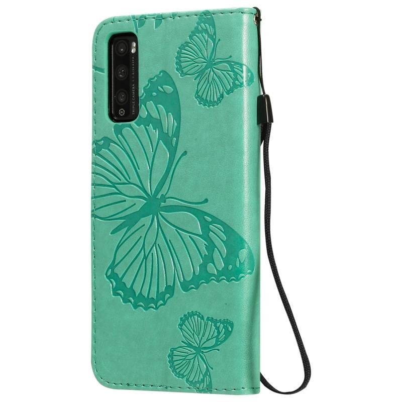 Θήκη Huawei Enjoy Z 3D με ανάγλυφο σχέδιο πεταλούδων, οριζόντια, από δέρμα με βάση στήριξης, θήκη για κάρτες, πορτοφόλι & λουρί (Πράσινο)