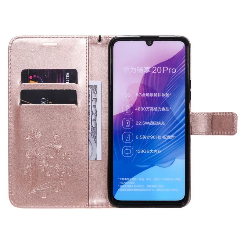 Θήκη Huawei Enjoy Z 3D με ανάγλυφο σχέδιο πεταλούδων, οριζόντια, από δέρμα με βάση στήριξης, θήκη για κάρτες, πορτοφόλι & λουρί (Μπλε)