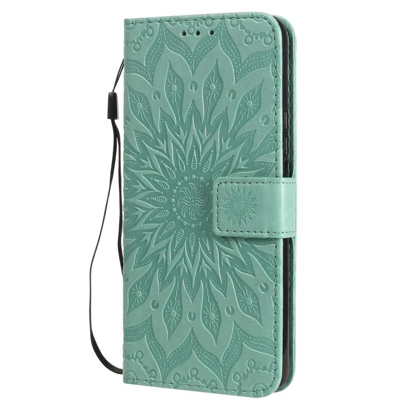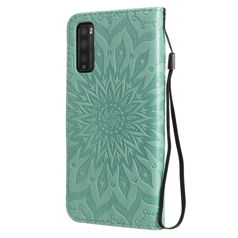 Για Huawei Enjoy Z Πιεσμένη εκτύπωση ηλιοτρόπιο μοτίβο οριζόντια Flip PU δέρμα θήκη κάτοχος & υποδοχές καρτών & πορτοφόλι & κορδόνι (πράσινο)
