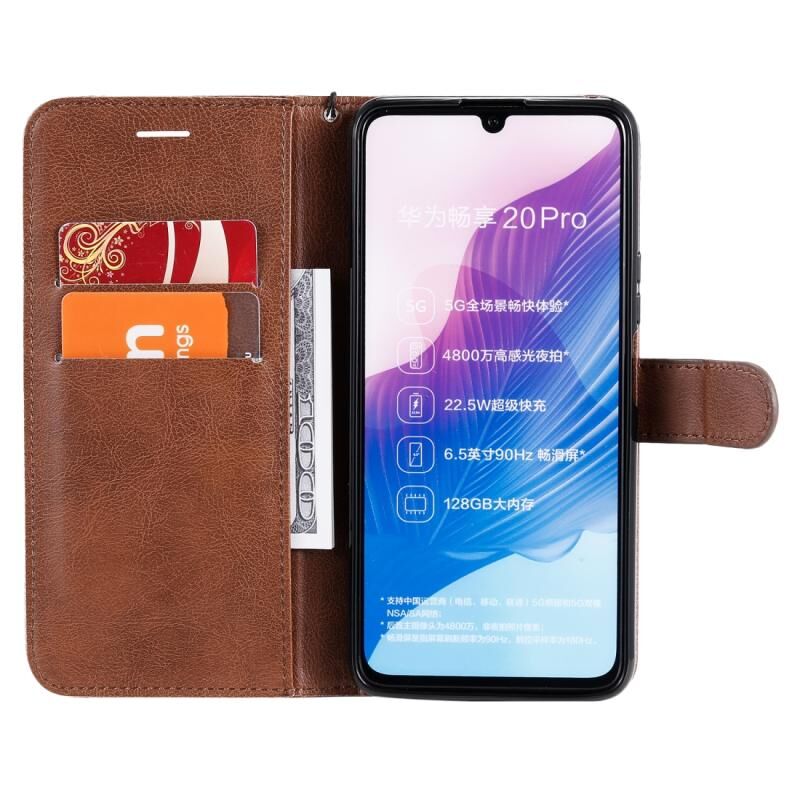 Για Huawei Enjoy Z Αμιγές χρώμα οριζόντια Flip προστατευτική δερμάτινη θήκη με κάτοχο & υποδοχές καρτών & πορτοφόλι & πλαίσιο φωτογραφιών & κορδόνι (καφέ)