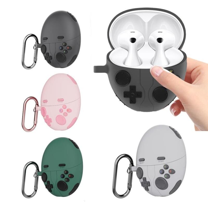 For HUAWEI FreeBuds 6 Case Cover Shockproof Silicone Protective Sleeve with Carabiner(Pink)