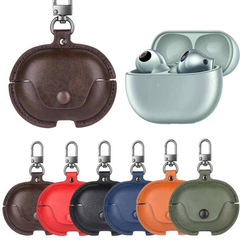 Θήκη προστασίας ακουστικών από δέρμα για Huawei FreeBuds Pro 3 / Pro 4 με γάντζο (Μαύρο)