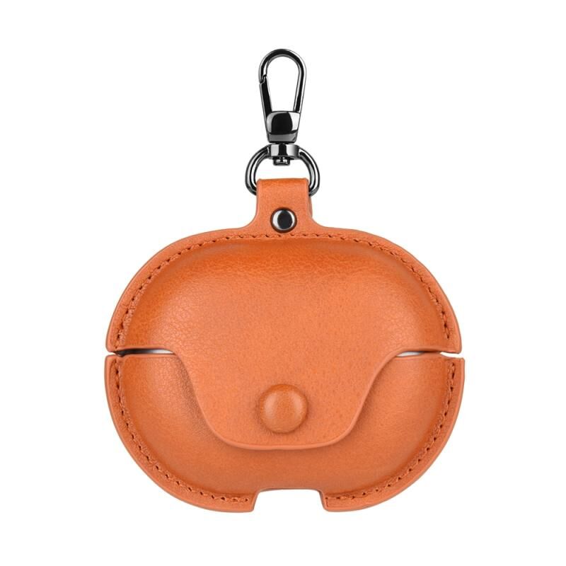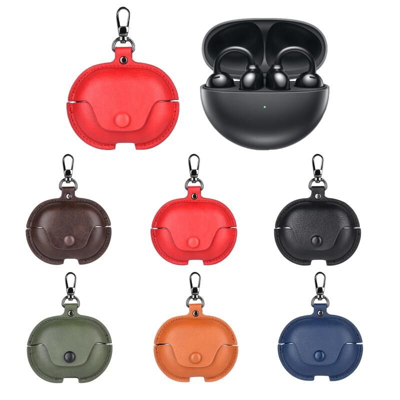Για Huawei FreeClip Business δερμάτινη θήκη προστασίας ακουστικών με γάντζο (ανοιχτό καφέ)