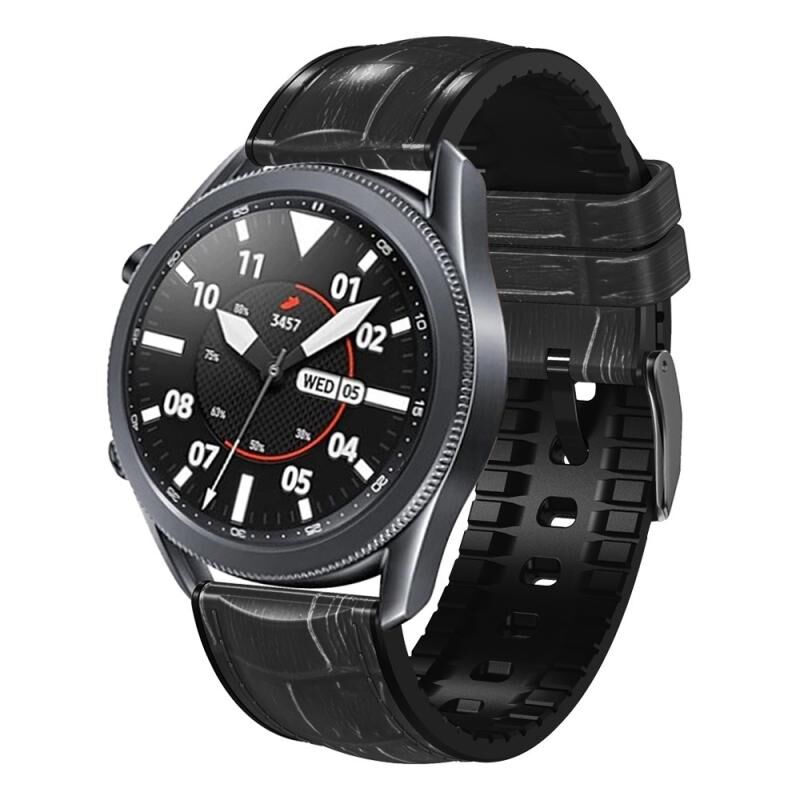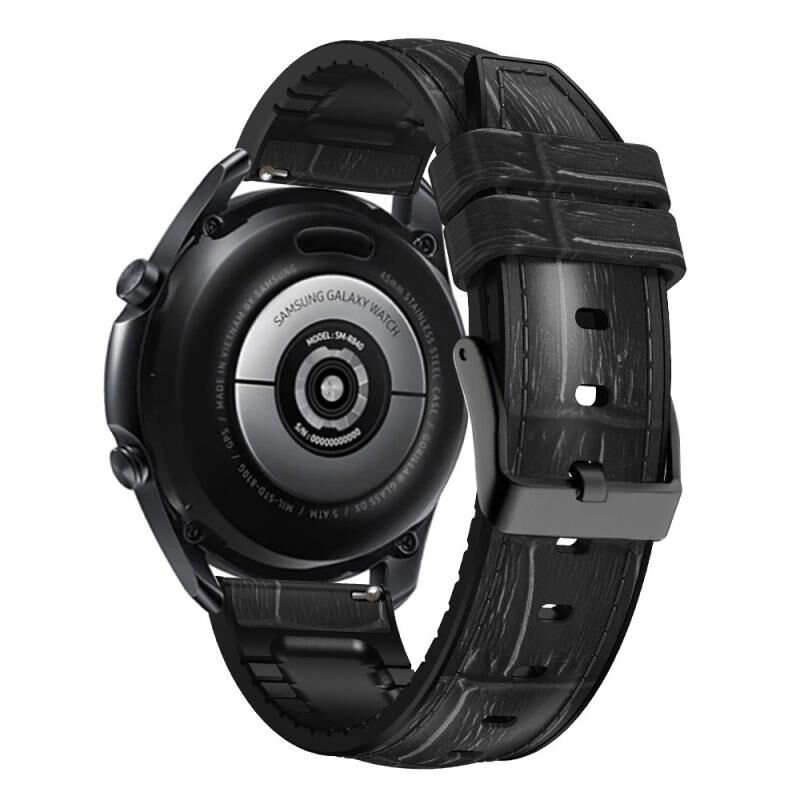 Για Huawei GT 3 Pro 46mm Λουρί Ρολογιού από Σιλικόνη και Δέρμα με Υφή Αρθρώσεων Μπαμπού (Μαύρο)
