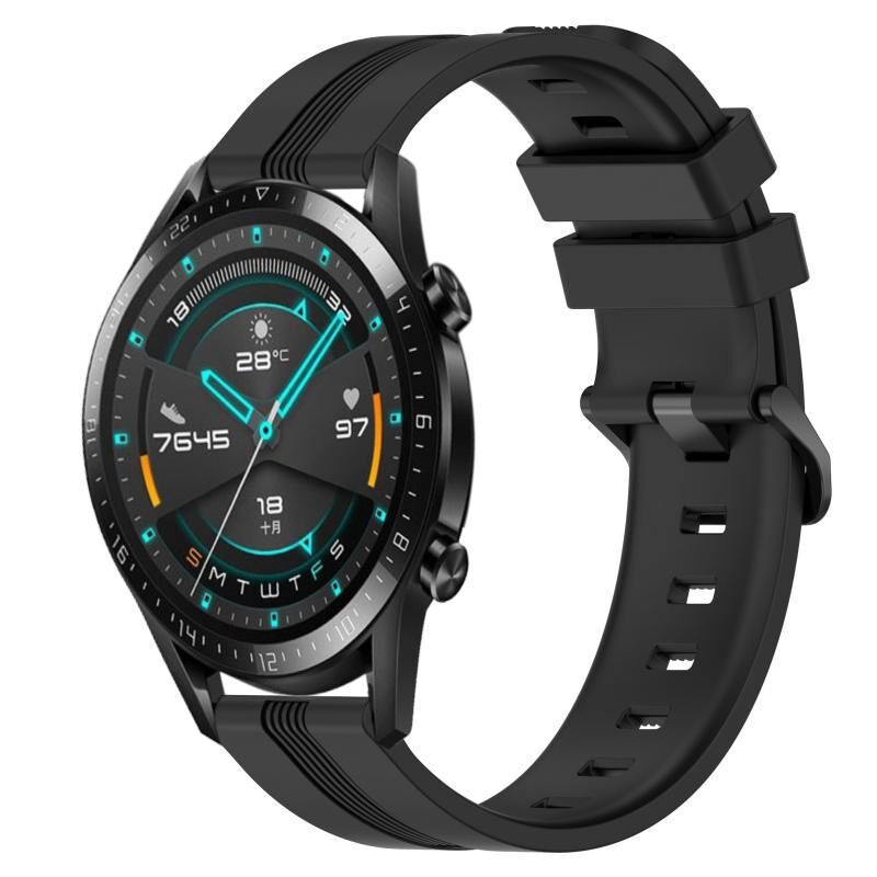 For Huawei GT2 46mm 22mm Concave Striped Slicone Watch Band(Black)