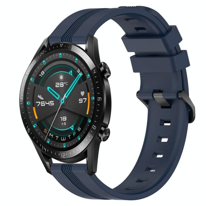 Για το Huawei GT2 46mm 22mm Concave Striped Slicone Watch Band (Ναυτικό μπλε)