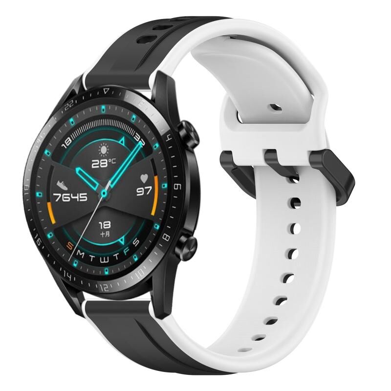 Για το Huawei GT2 46mm 22mm κυρτό βρόχο σιλικόνης δύο χρωμάτων (μαύρο + λευκό)
