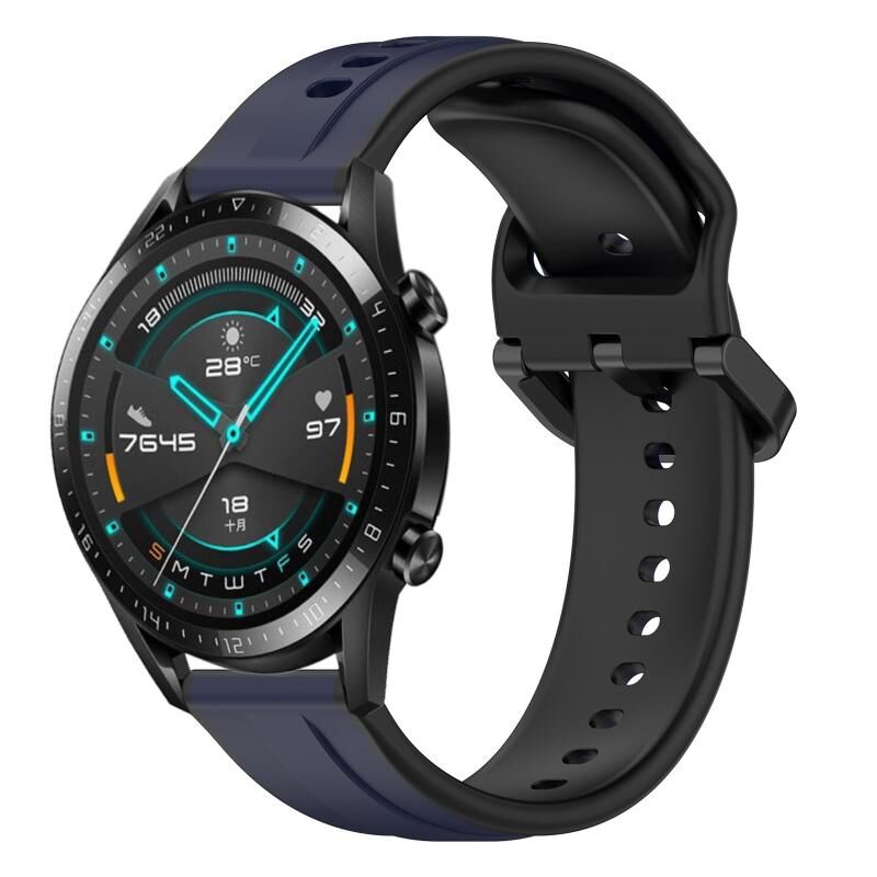 Για το Huawei GT2 46mm 22mm κυρτό βρόχο σιλικόνης δύο χρωμάτων (Μπλε μεσάνυχτα + Μαύρο)