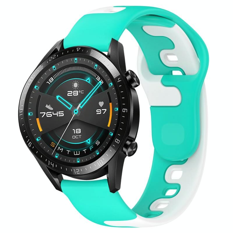 Για Huawei GT2 46mm 22mm Διπλό χρώμα σιλικόνης ρολόι μπάντα (Cyan + Λευκό)